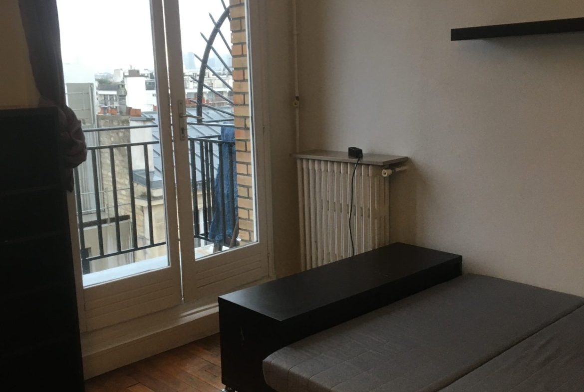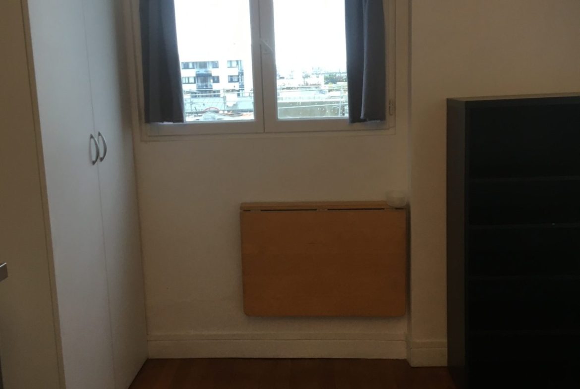 - Emplacement : Au 7ème étage d’un immeuble datant des années 30, ce studio meublé de 20 m² offre une vue imprenable sur tout Paris.