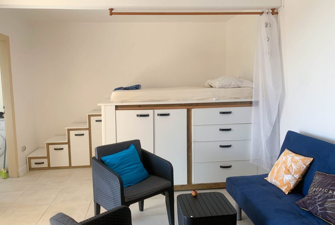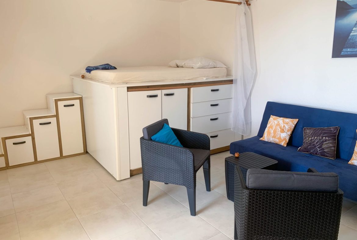 - Équipement : Appartement entièrement équipé avec une pièce principale climatisée, aménagée avec un lit en mezzanine comprenant de nombreux rangements.