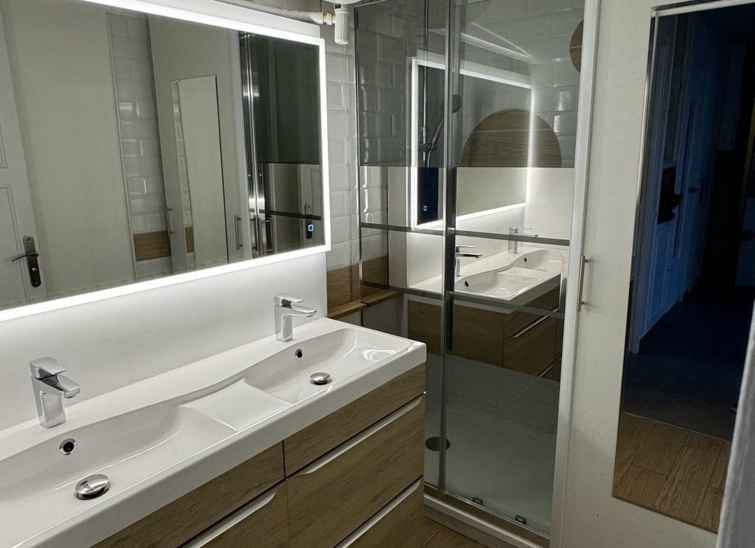 - Salle de bain : Salle de bain moderne avec toilettes séparées.